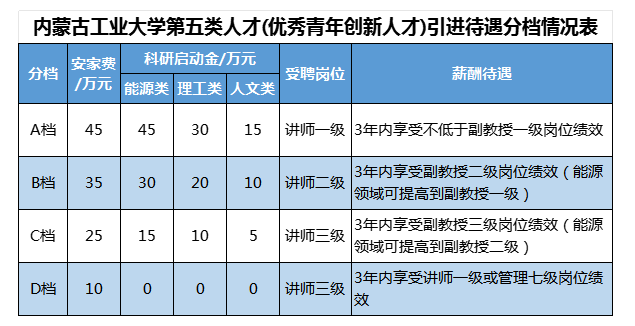 按照《6776永利集团高层次人才引进实施办法》(内工大 校发〔2023〕48号)中的人才分类分档相关规定,学校组织专家对拟引进人员的业绩成果、学科背景、发展潜力等进行综合评议,确定引进人才类型、档次和待遇。对于个别发展潜力巨大的急需人才,也可采取“一事一议”的方式协商相关待遇。