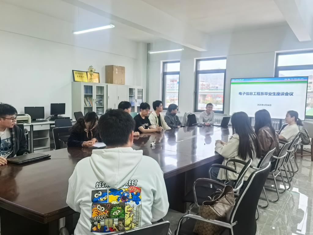 为提高教研室专业建设水平,贯彻“学生中心、产出导向、持续改进”教学理念,提升创新人才培养质量。2025年5月8日下午,电子信息工程系在电力信息大楼A座314室举办2025届毕业生座谈会。系主任李栋主持会议,教师代表侯婷、王艳荣、曹琪等老师,与电子21、通信21毕业班学生代表进行了座谈,毕业生们对20版和23版培养方案培养目标、毕业要求和课程体系等进行了反馈研讨,同时同学们针对大学四年学习生活感想,以及对学院和专业其他方面意见建议等进行了交流。