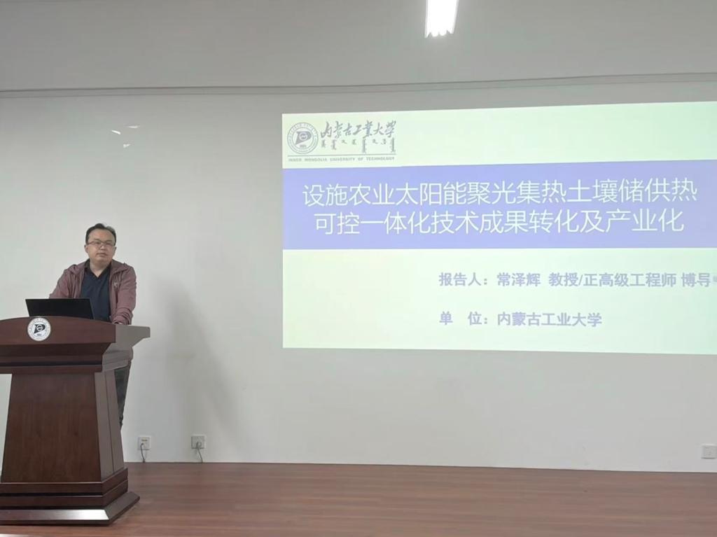 常泽辉教授以自己团队研发的“设施农业太阳能聚光集热土壤储供热可控一体化技术”为实例,系统阐述了该项技术从基础研究、概念验证,到中试熟化和商业应用的全过程。他重点介绍了在成果转化过程中如何准确把握产业需求、进行技术适配与优化、开展校企合作、构建商业模式以及解决实际运行中的工程问题等关键环节,生动展示了科技成果从“论文”走向“市场”的实践路径。