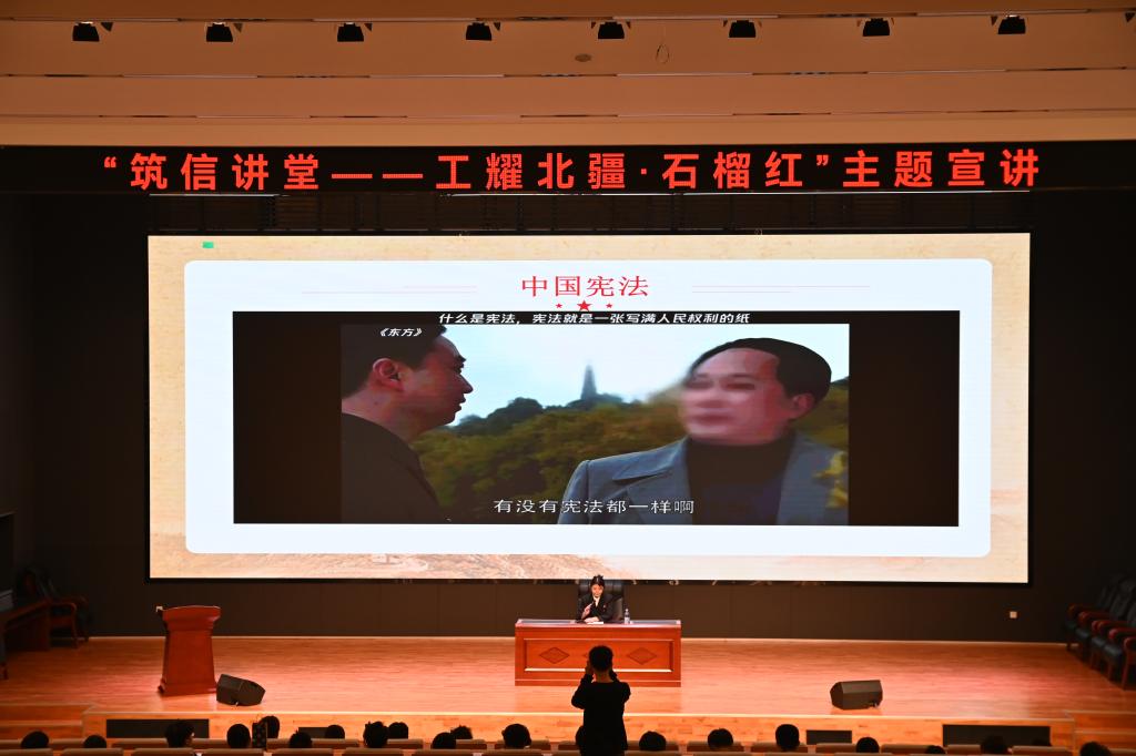 宣讲嘉宾紧扣“弘扬宪法精神,维护宪法权威”主题,系统阐释了宪法的地位作用、发展历程及其与一般法律的区别,结合典型案例强调全体公民都应当以宪法为根本活动准则,自觉维护宪法尊严和权威。活动现场设置了宪法知识竞答环节,师生踊跃参与,互动气氛热烈。嘉宾勉励师生将宪法精神融入专业学习与职业生涯,以实际行动践行“工耀北疆·石榴红”主题内涵,筑牢法治信仰,增强民族团结,服务北疆发展。