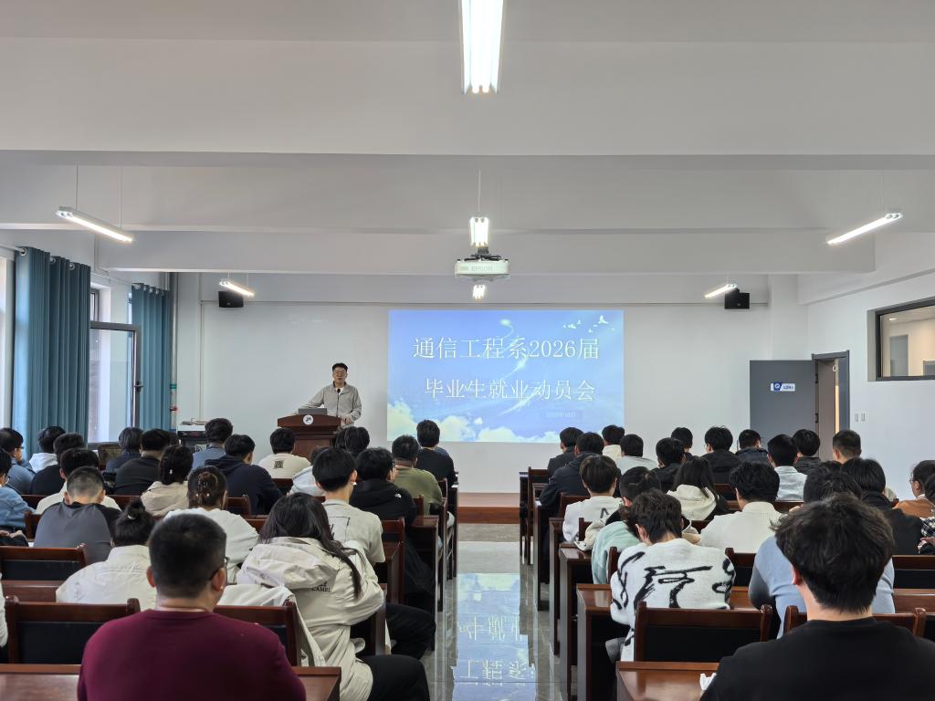 10 月 21 日,我院通信工程系在电力信息大楼 A208 会议室召开 2026 届毕业生就业动员会,系主任石宝、副主任曹琪、班主任马汉城、专职组织员许霞以及通信22级全体毕业生参加。