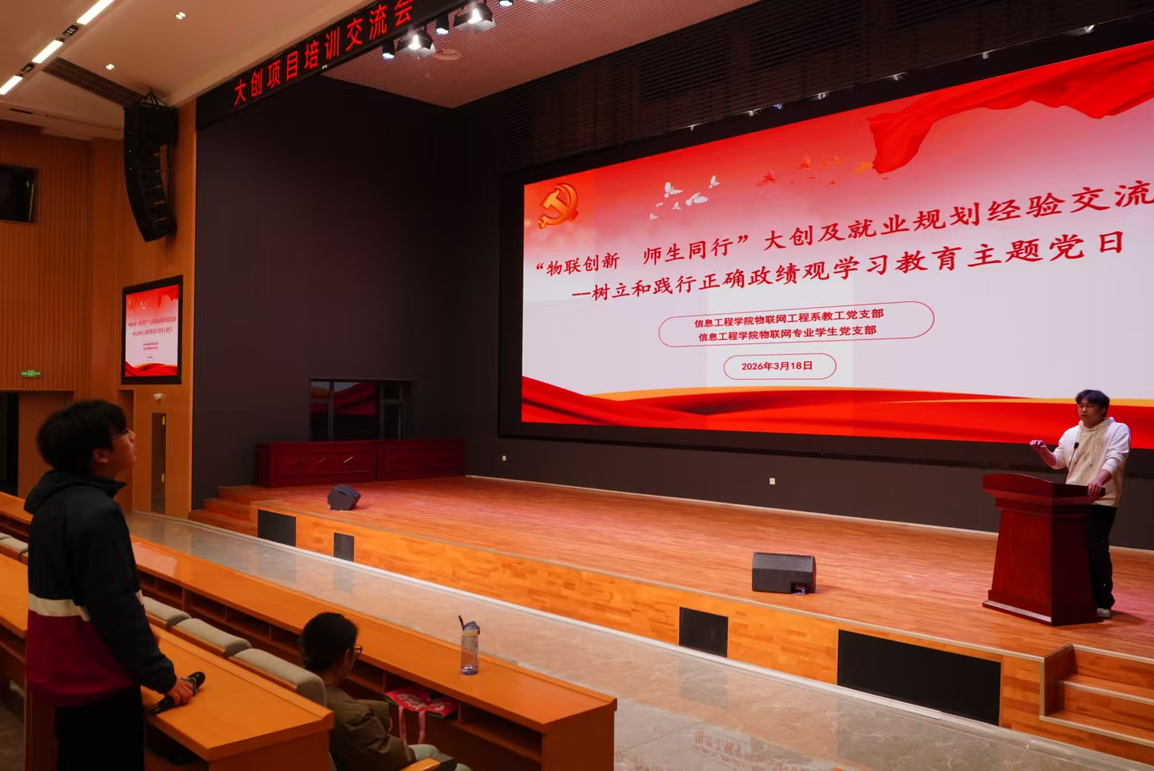 为深入学习贯彻树立和践行正确政绩观的重要要求,发挥党支部战斗堡垒作用和党员先锋模范作用,搭建师生交流平台,3月18日,yl6776永利集团物联网工程系教工党支部与物联网专业学生党支部在电力信息楼A115报告厅联合举办“物联创新 师生同行”大创及就业规划经验交流会。物联网专业学生党支部全体党员,入党积极分子及大一、大二全体学生参加活动。