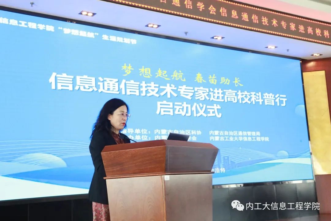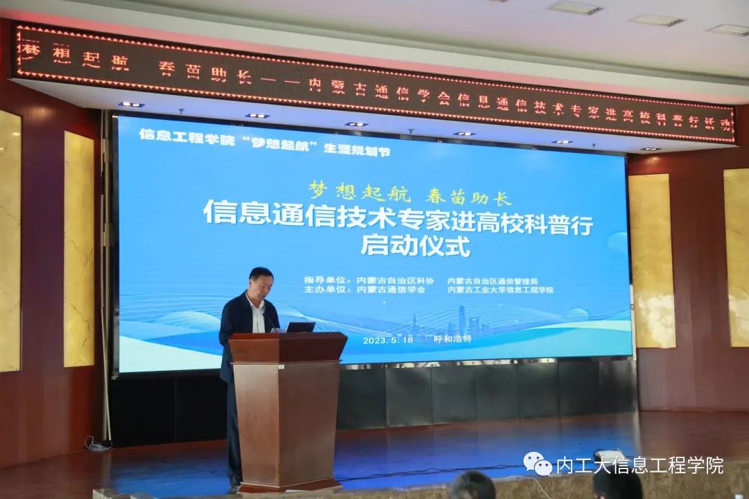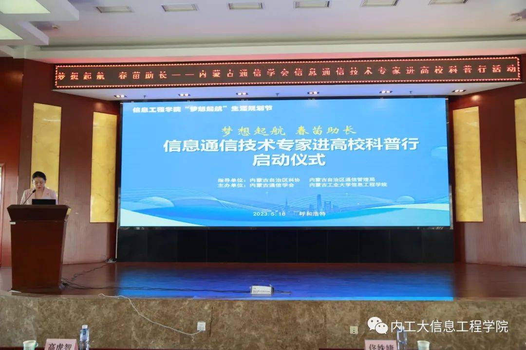 内蒙古通信学会秘书长高虎智、夏纪文主任、郭敏副主任带领科普专家王旭、王学敏走进校园,以行业发展前沿的专业视角面向我院师生开展本次科普教育。我院副书记、副院长佟姝婕、副院长张占强、系主任李栋、 内蒙古通信学会副理事长、学院教授纪松波及部分老师出席活动。大二、大三、研究生共计170余人参加。