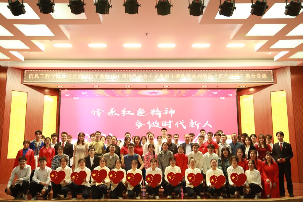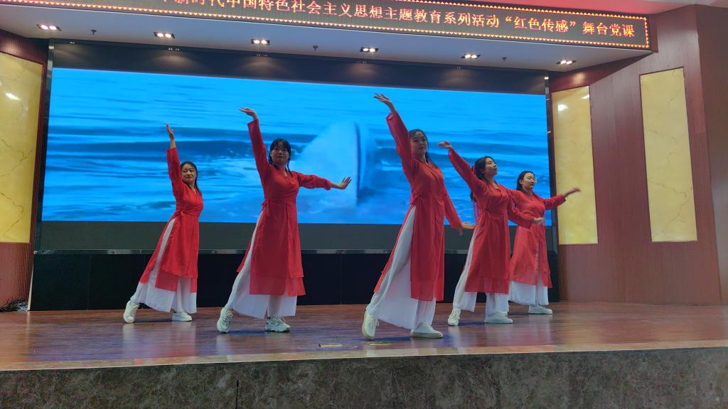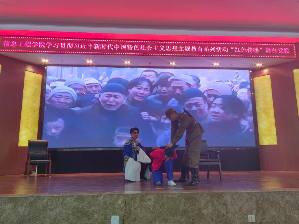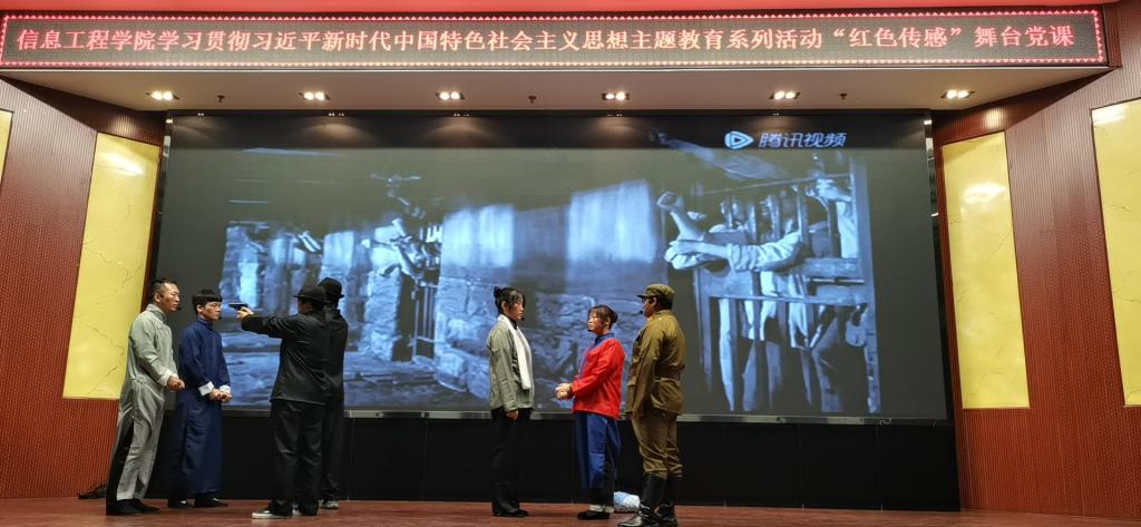 此次舞台党课以学习贯彻习近平新时代中国特色社会主义思想主题教育为主线,以“红色传感”为主题,通过情景剧、歌舞、朗诵、合唱等多种艺术形式,将党性教育融入舞台艺术,把党课从“讲台”搬到“舞台”,在歌舞中感受坚韧不拔、欣欣向荣的中国,培育师生爱国情怀;在情景剧中把中国人民志愿军、刘胡兰、江姐等具有时代风采的红色典型和英雄故事搬上舞台,展现共产党员坚韧不拔、百折不挠、英勇顽强、舍生取义的伟大精神,让师生接受红色革命精神洗礼;在诗歌朗诵中用真情讴歌伟大时代和伟大祖国,进一步坚定信念、鼓舞斗志、凝聚力量。