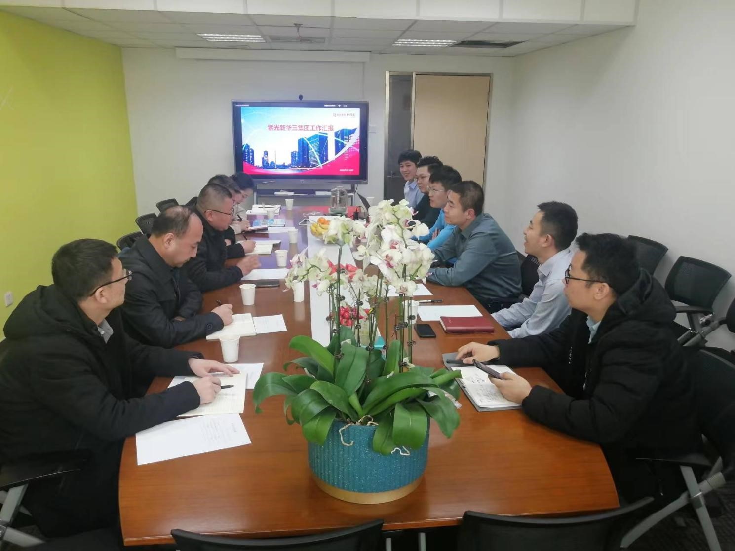 新华三集团内蒙古代表处总经理于英瑞,副总经理付增光、李永军等企业代表对乌迪、黄平平一行表示热烈欢迎。双方一致达成合作意向。