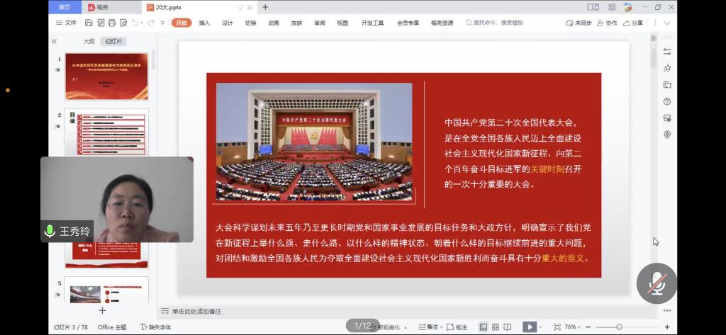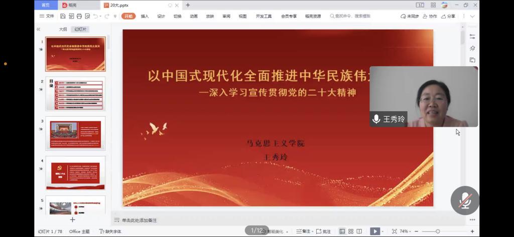 12月8日下午,yl6776永利集团邀请学校党的二十大精神宣讲团成员、马克思主义学院王秀玲教授做专题宣讲。学院党委书记乌迪主持会议,学院全体教师参加线上学习。