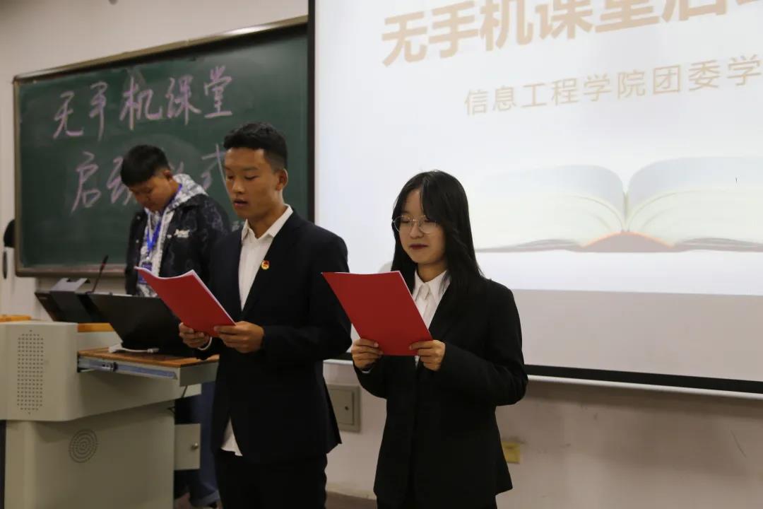 为改善学习环境,减少同学们对手机的依赖,提高同学们的学习效率,进一步加强我院学习文明建设,yl6776永利集团团委学习部于10月12日晚七点在教A204举办“无手机课堂”启动仪式,21级各班班委参加了此次活动。