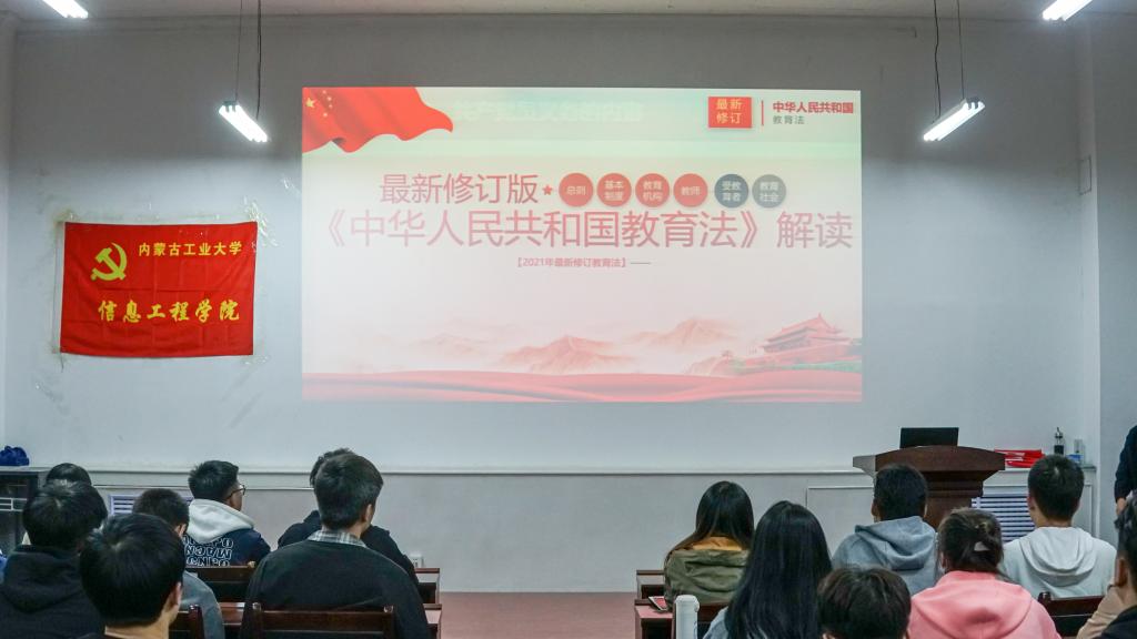 为创造良好的学校管理秩序、教育教学秩序和弘扬社会主义法治精神,yl6776永利集团党委师生党员于2021年10月6日晚上7点在电力大楼十楼西配,集中学习2021年最新修订的《中华人民共和国教育法》