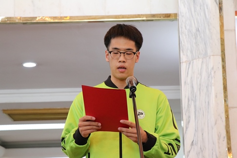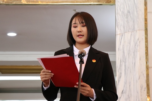 院学生会主席,电子17-1班董国钰,电子19-1班武镪卓分别作为在校生代表、新生代表发言。