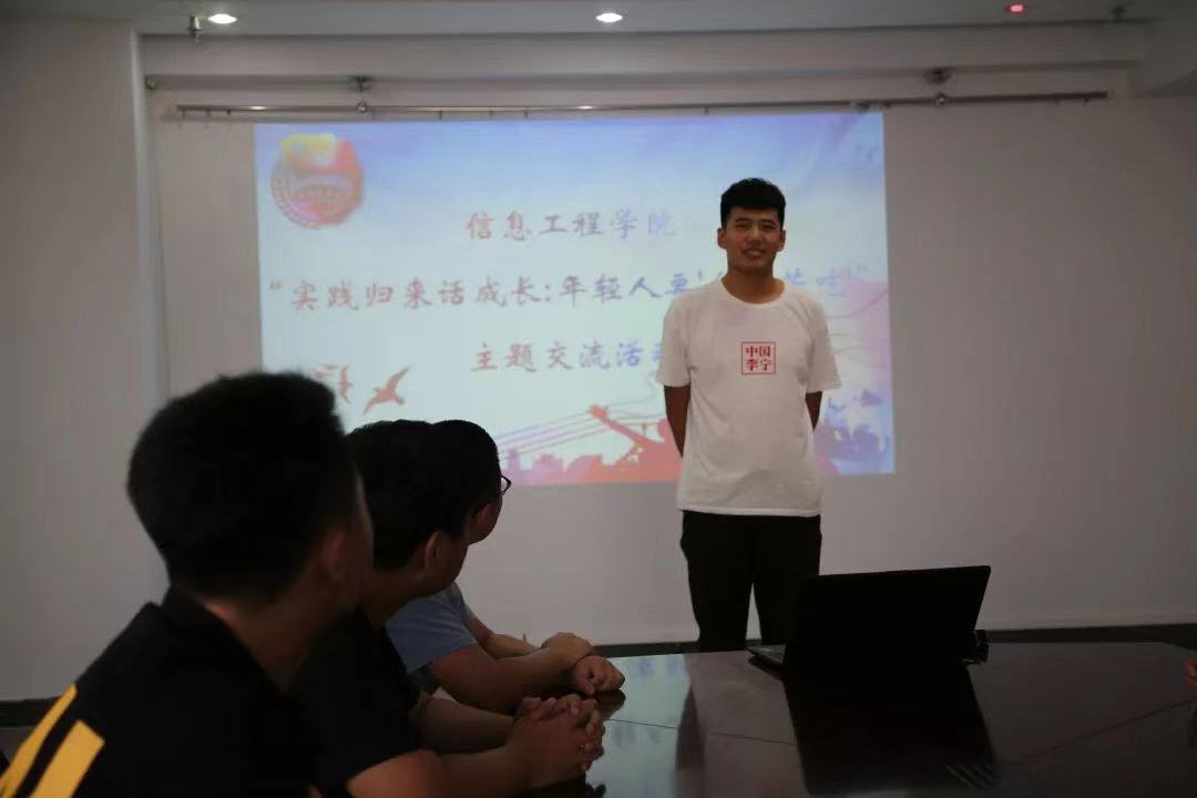 为进一步深化学生知行结合精神,加强学生对“三下乡”实践活动的体会,重拾实践精彩。我院于9月3日晚在电力大楼九楼会议室举行“实践归来话成长:’年轻人要自找苦吃’”主题活动,各分队队员代表到会来分享他们的经验与活动感受。