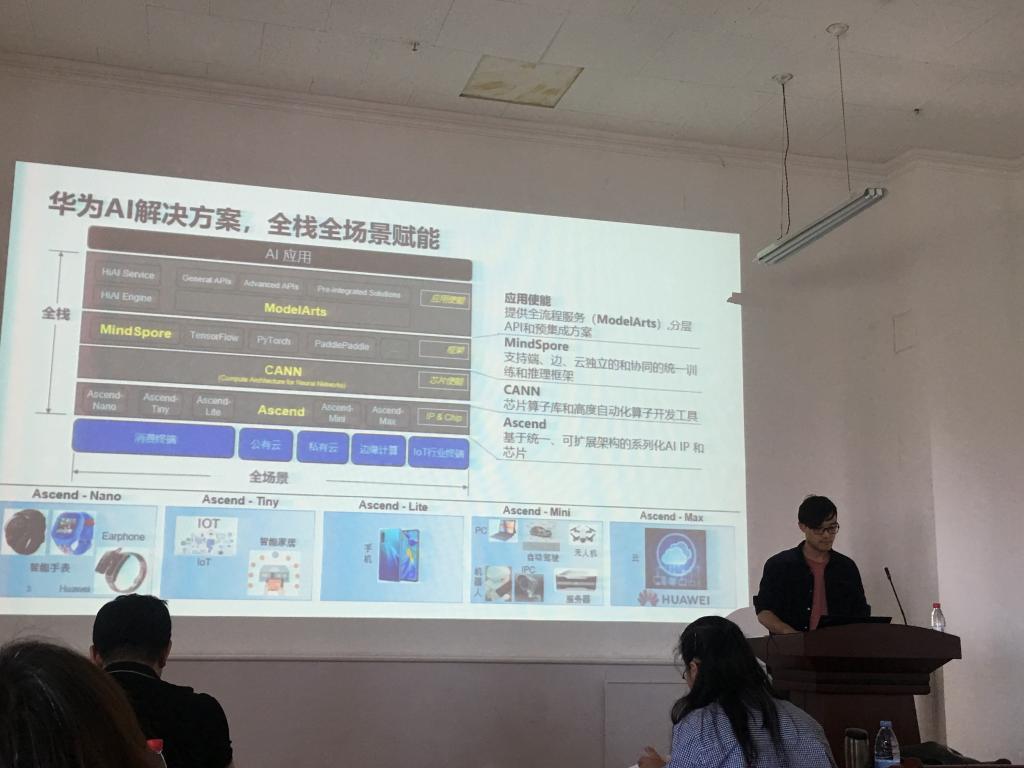 郝志宏总监依次从AI发展趋势及产业现状、Atlas教育行业生态建设、Atlas教育行业解决方案和Atlas教育行业成功实践四个方面对产学融合共建AI教育生态做了深刻剖析。郝总监提到人工智能的巨大产业价值,并已上升为国家战略,90%以上的需求缺口将集中在新ICT生态人才,亟待产学协同构筑未来产业发展的底座。郝总监还介绍了Atlas 800深度学习系统业务流、Atlas 200DK业务流、Atlas 300AI加速卡、Atlas 500智能小站等华为最新AI技术和产品。之后,华为AI芯工程师还做了Ascend 310芯片架构及方案介绍,包括Ascend 310芯片架构、Ascend 310 芯片软件栈、Ascend 310工具软件、算法移植与软件开发指导等。