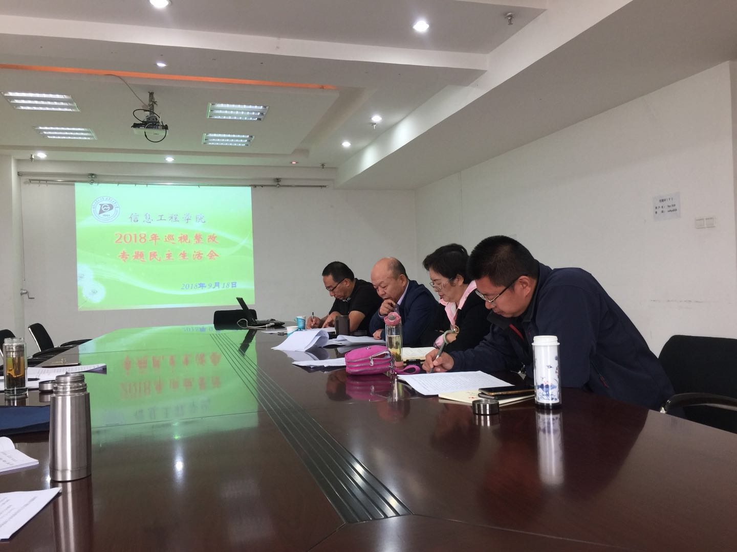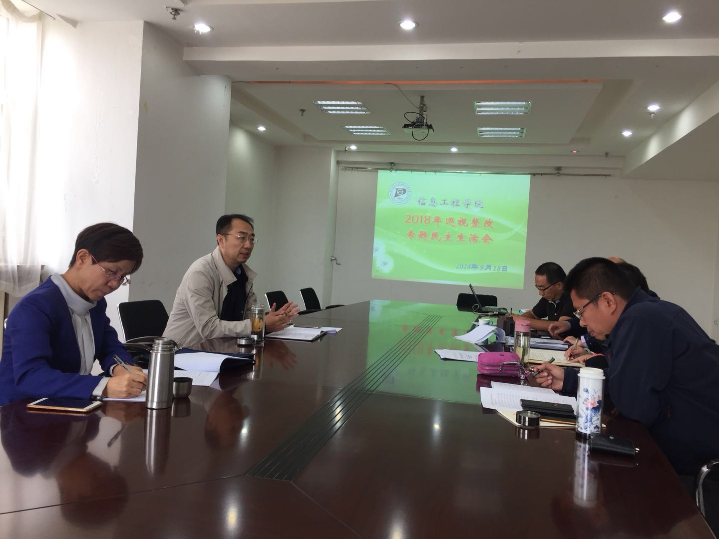 吕校长对民主生活会进行了点评,他说,信息学院正处于发展的关键时期,院党委班子和班子成员,要充分发挥示范带头作用,自觉担当起全面从严管党治党的主体责任,必须要牢固树立“四个意识”,在践行“两个维护”上态度必须坚决,立场必须坚定,切实把“两个维护”真正体现在行动上,落实在工作中。要加强政治理论学习,践行好“三严三实”,严守纪律规矩,进一步营造风清气正的良好政治生态,把学院党委班子打造成为政治坚定、纪律严明,作风过硬、清正廉洁的坚强领导集体,齐心协力抓好巡视巡察反馈意见的整改落实。