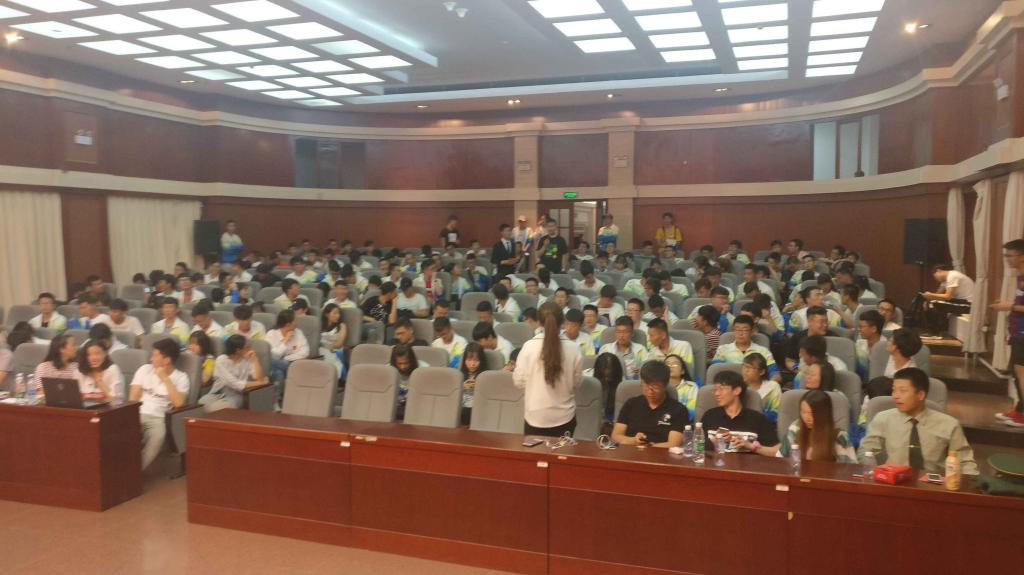 我院200余17级学生身着校服,部分同学因会场座位有限站着听完整场报告会,他们用自己的方式向工大优秀榜样的主讲人们致敬!会场氛围十分热烈,台下的同学在互动环节积极踊跃向嘉宾提问,有不少学生在采访中谈到受益匪浅。