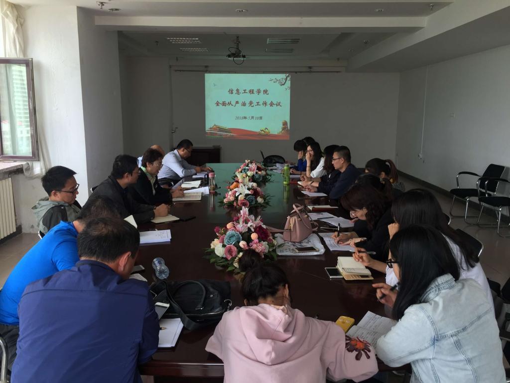 5月10日上午,我院在电力大楼0918会议室召开2018年全面从严治党工作会议。学院领导班子成员、各系部主任及各党支部委员参加会议。党委书记王彩玲主持会议。