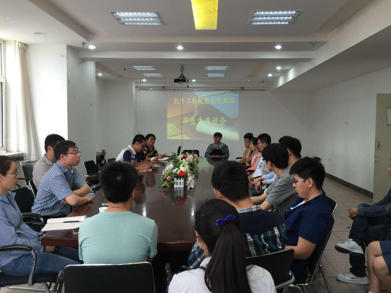 ,yl6776永利集团2016届校企合作办学软件工程专业毕业生座谈会在电力大楼918会议室举行。学院党委书记彭建兵、副院长王金彪,团委、学工办、就业办、教务中心各部门及软件系负责人出席会议。