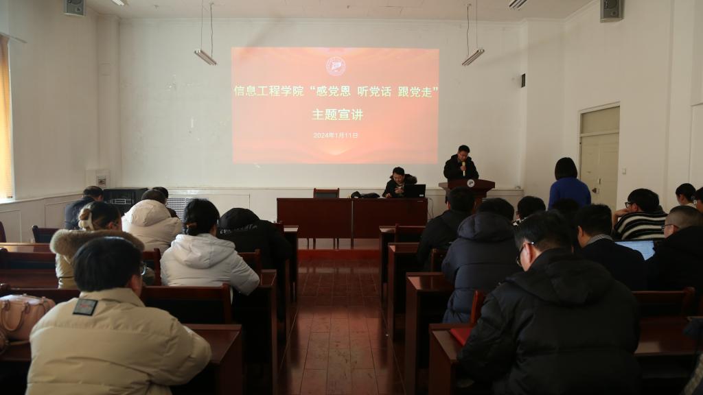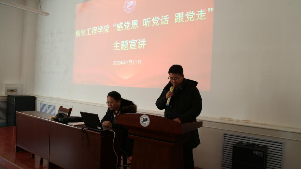 2024年1月11日下午,yl6776永利集团开展“感党恩 听党话 跟党走”主题宣讲,邀请马克思主义学院硕士研究生导师王大为老师作题为《感党恩、听党话、跟党走---奋力书写中国式现代化内蒙古新篇章》的主题宣讲。学院党委书记乌迪主持,师生代表100余人参加。
