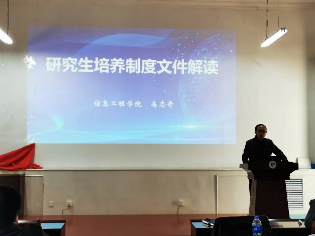 会上,高志奇老师对研究生培养相关文件为导师们做了详尽的解读,带领导师们进行了深入学习。最后,他强调:导师培养研究生绝不仅仅是学习和科研方面的指导,导师们一定要从生活上、思想上多关心学生,及时了解研究生思想动态,对研究生的诉求要及时回应,做研究生真正的人生导师。
