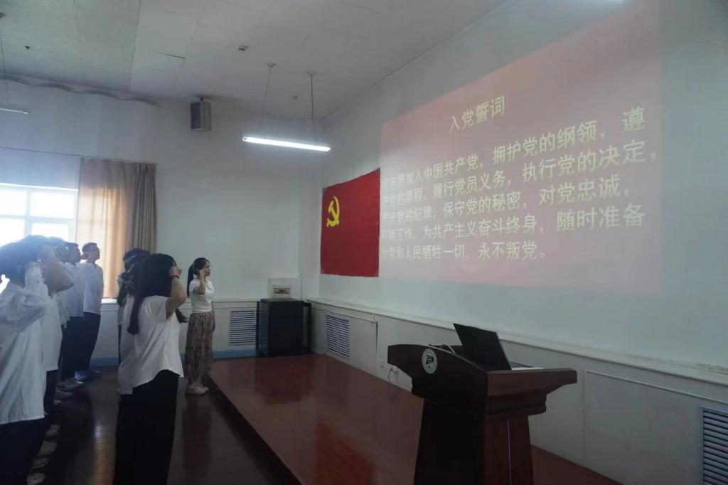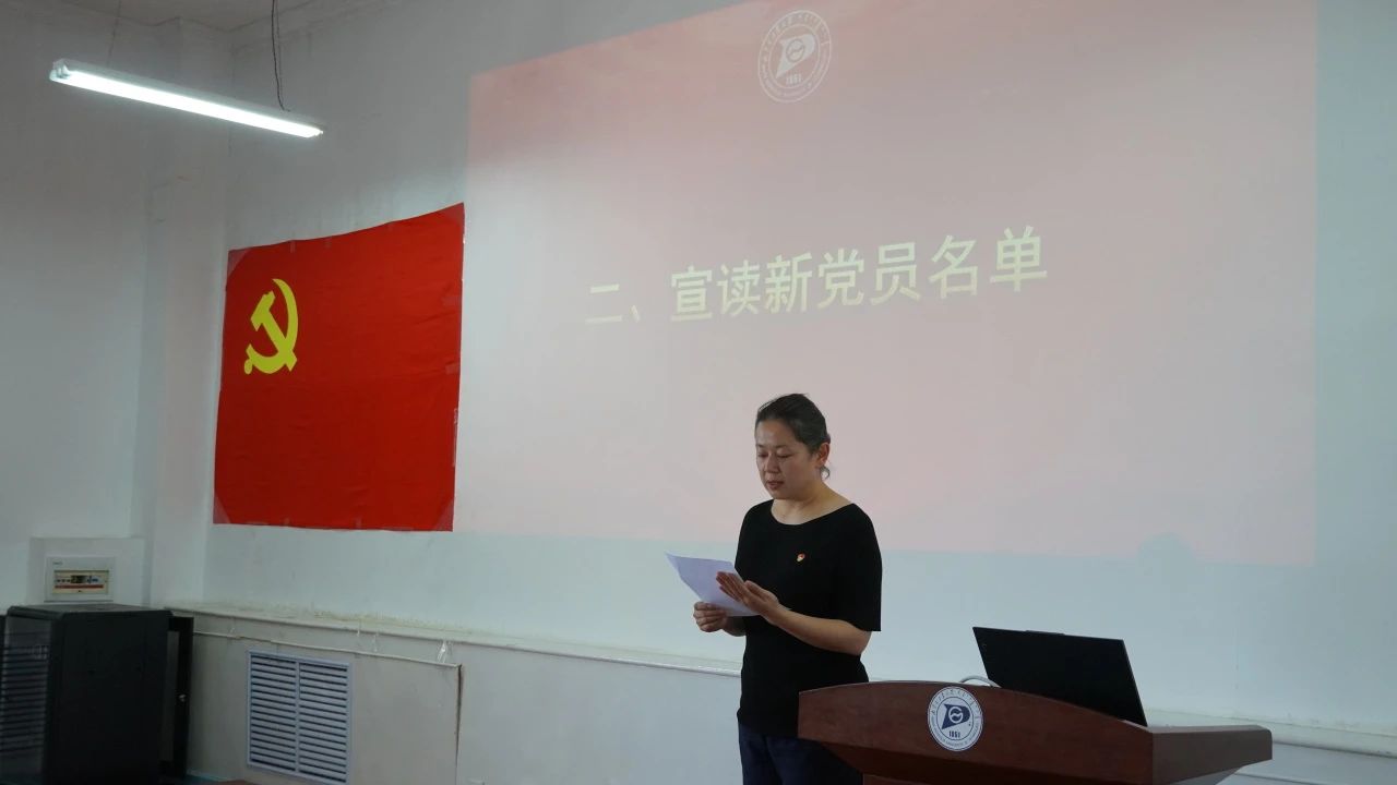 大会在新老党员合唱中华人民共和国国歌中拉开帷幕。在大会中为新党员举行入党宣誓仪式,由学院党委委员、教师老党员为新党员佩戴党员党徽,随后学院团委书记赵智琦带领新党员宣誓、老党员重温入党誓词。计算机22-1班王晓鹏同志代表新党员发表讲话,表达了对党的忠诚和为党的事业奋斗的决心。