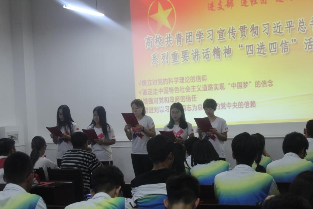 为加强学生对习近平新时代中国特色社会主义思想的理解、深化学生对“四进四信”内容的领悟,牢固树立“四个意识”,坚定“四个自信”,我院于5月16日晚7:00在电力大楼10楼西配举行了“四进四信,争做四可青年”主题活动。