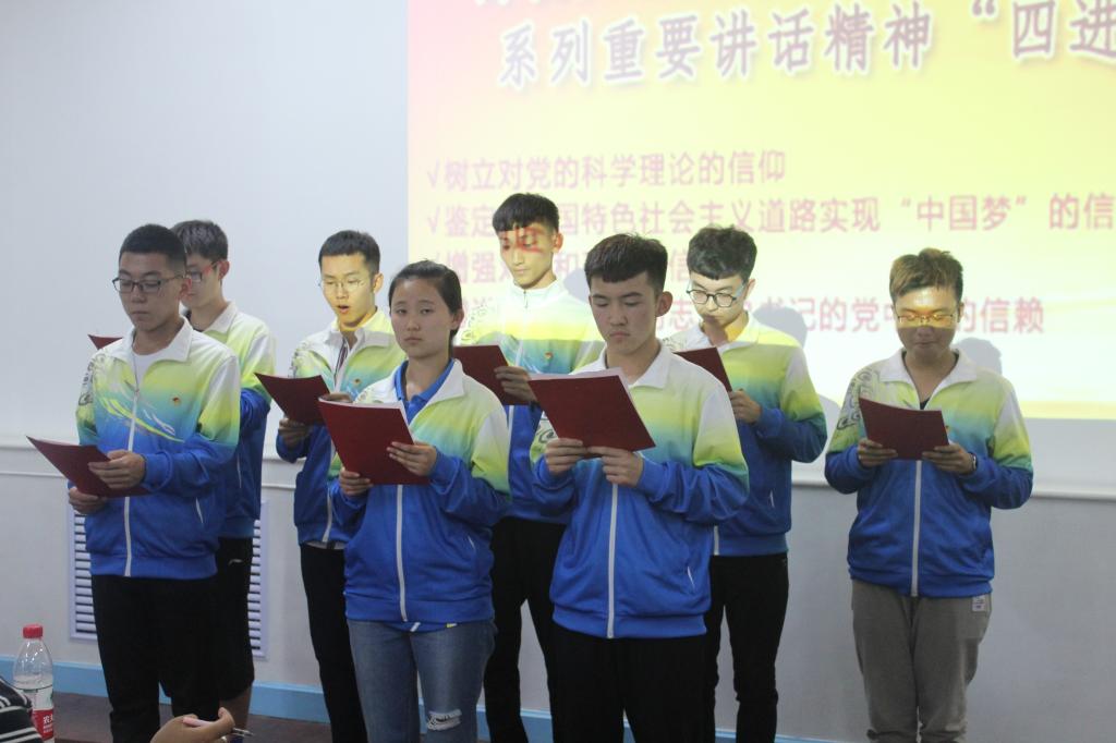 同学们用高昂的歌声唱响《打靶归来》、《精忠报国》等一系列红歌,歌声响遏行云,牵动着每个人的心灵,观众们为之震撼!另一部分同学用饱满的情怀和昂扬的姿态朗诵《党旗颂》、《祖国的未来》、《心的宣言》等篇章,展现了新青年勇往直前的精神。活动的最后,通过签名的方式,再次强调了同学们要身体力行,将"四进四信"活动的精神发扬光大,运用到实际行动中,争做四可青年。