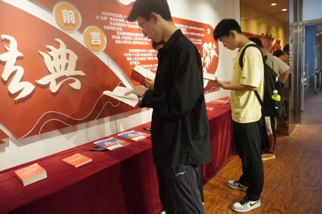在《民法典》展厅内,讲解员详细介绍了《民法典》的编纂历程、基本内容和重要意义。展厅内展示了大量有关《民法典》实际案例的展示板和实物资料,从总则、人格权、物权等多个角度生动诠释了《民法典》的具体条文,为在场师生们上了一堂生动的纪律课、普法课。