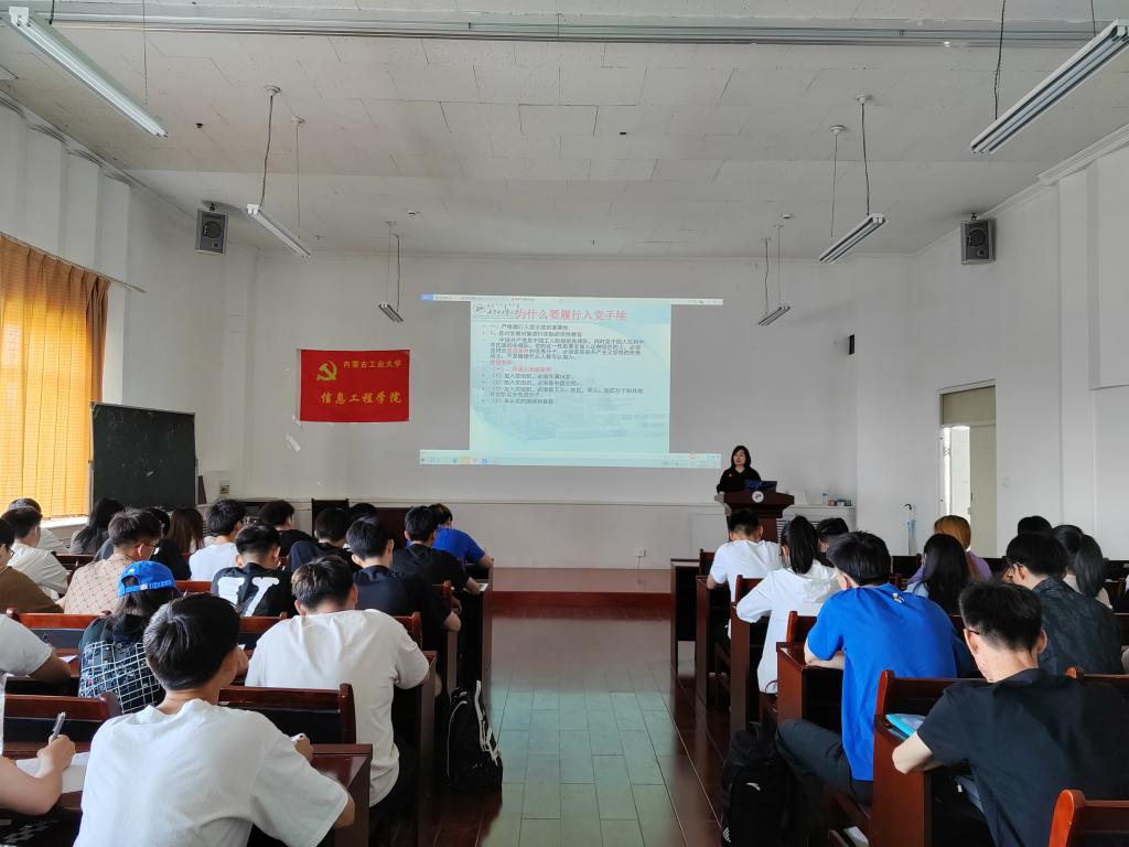 党委书记乌迪围绕“追忆开国历程 做新时代好青年”这一课题进行详细讲解;院长黄平平结合信息类专业发展阐述了“弘扬‘两弹一星’精神”的重要意义;党委副书记、副院长佟姝婕以“新时代青年的使命”为题引导大家展开讨论、学习;副研究员王彩玲组织大家认真学习“铸牢中华民族共同体意识”;学院党委委员许霞对端正大学生入党动机和大学生入党流程做了深入介绍;校外辅导员翟鹤重点给大家讲解了如何发挥大学生党员的先锋模范作用。