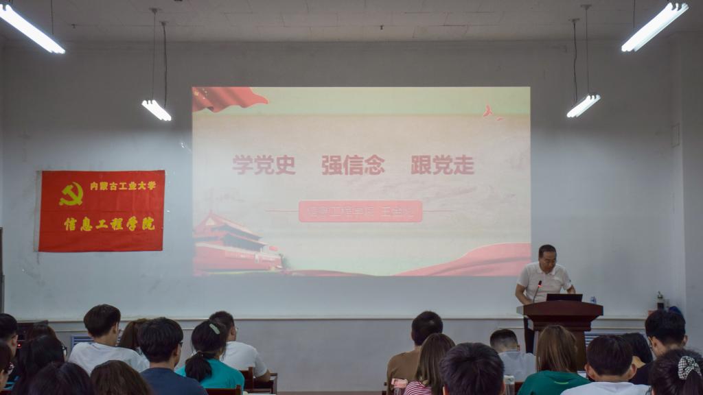 学院党委书记王彩玲老师主要为同学们介绍了“铸牢中华民族共同体意识”的深刻内涵,意在强化大家的中华民族共同体观念;院长李春明老师组织同学们对“新发展格局”这一话题展开讨论、学习。党委副书记、副院长王金彪老师为了使同学们深刻理解“学党史、强信念、跟党走”这一主题的重要意义为大家进行了细致讲解,主要强调明晰党史的重要意义;党委委员、行政党支部书记许霞老师就入党流程向大家进行系统讲解,同时要求大家在入党过程中要时刻端正自己的入党动机;校外辅导员翟鹤老师给大家讲述了在信息化时代大学生提高保密意识的重要作用及意义,鼓励大家做新时代的优秀青年;学习过程中,同学们共同观看了《重生》这一纪录片,从中了解了中国共产党从建党到中华人民共和国成立28年间的奋斗历程;还观看了《榜样5》,学习了在新冠疫情防控期间中国共产党党员所展现出英勇奉献的大无畏精神,鼓励大家向优秀的党员同志看齐。