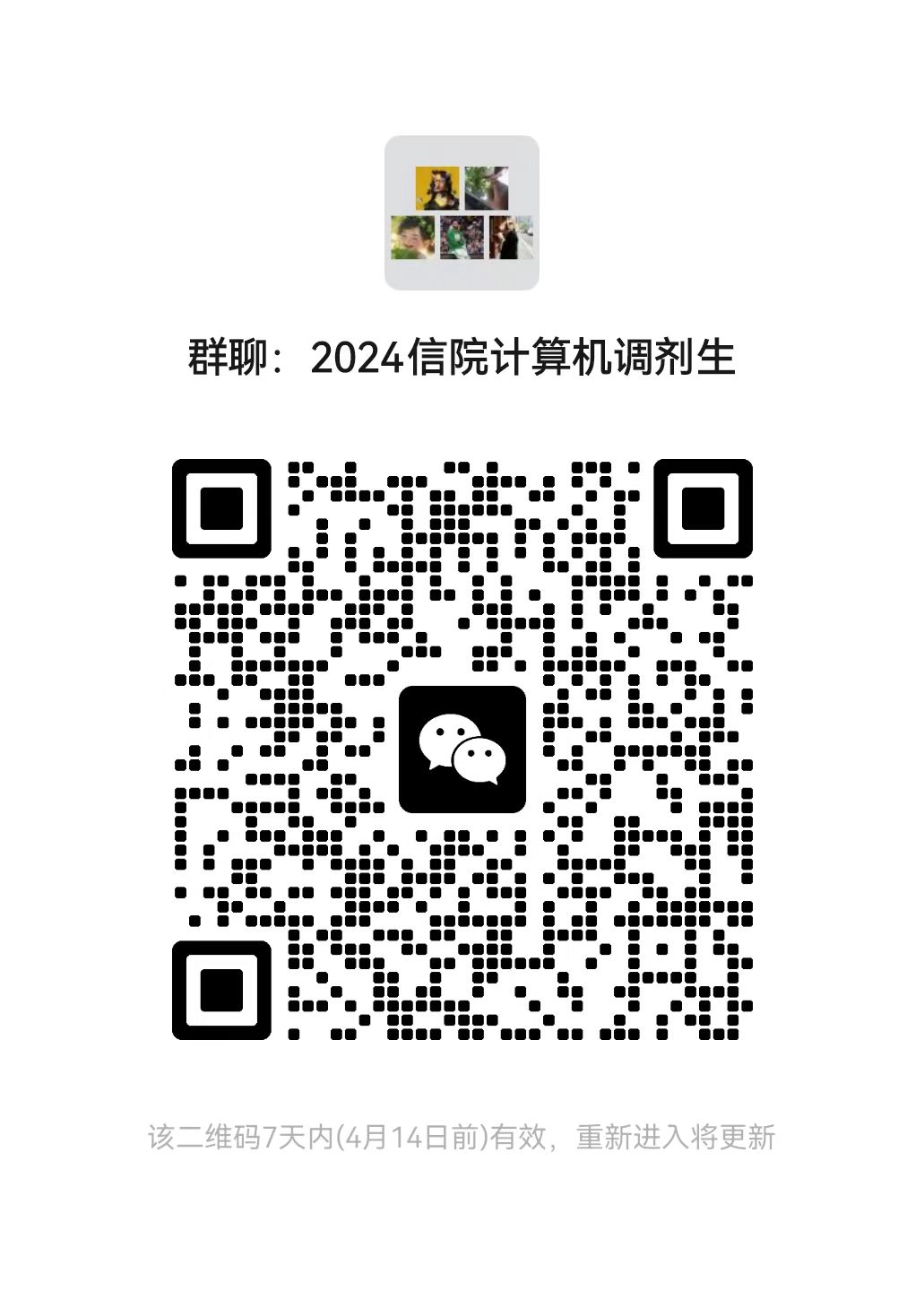计算机科学与技术和计算机技术的考生加入“2024信院计算机调剂生”微信群;信息与通信工程的考生加入“2024信院信通调剂生”微信群。