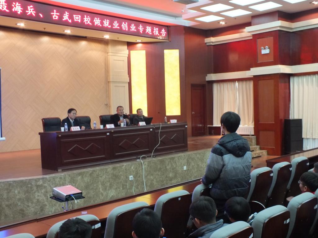 古武为同学们讲述了自己求学、工作到创业的人生历程。3次参加高考,超过重点线40多分却由于意外没有如愿到一所医科大学学医,而是来到工业大学学电子工程。但他并没有被命运屈服,上了大学后,踏踏实实学习,认真钻研专业知识,最后以优异的成绩毕业。毕业后,开始选择了一家大型国有企业就职,后来又辗转到外资企业、民营企业,社会阅历极其丰富。正当他事业蒸蒸日上的时候,公司领导也决定重用他,但此时他选择了自己创业,他想干一些自己的事情。创业的过程非常艰辛,但是扎实的专业知识,过硬的技术本领,丰富的社会阅历,周围一帮亲同手足的同学,使他的公司经历了一些波折,但也很快步入了正轨。古武告诫师弟师妹们一定要珍惜大学期间的学习机会,从现在开始,怀着一颗感恩的心认认真真、踏踏实实的学好专业知识,学会独立思考,不断塑造自己的创新创业观念,敢想、敢拼,培养自己吃苦耐劳的精神。找工作时不要好高骛远,要根据自己的实际情况,为自己确立一个目标,工作一步一个脚印,定能在自己的工作岗位上施展自己的才华。