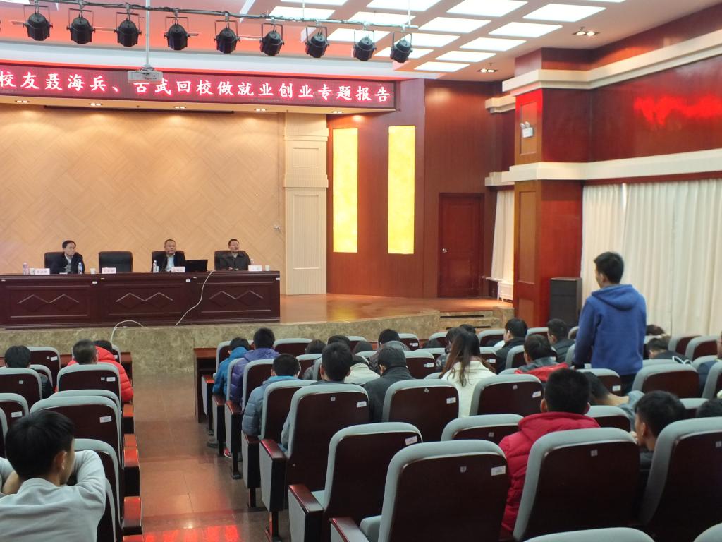 12月17日下午,我院邀请两位成功创业的校友回校为在校学生做就业、创业专题讲座。一位是我院95级计算机应用专业校友,北京赛孚信息技术有限公司、内蒙古赛孚信息技术有限公司、内蒙古博易智软技术有限公司三家公司的总经理聂海兵,另一位是我院96级电子工程专业校友,内蒙古大禹科技有限公司总经理古武。